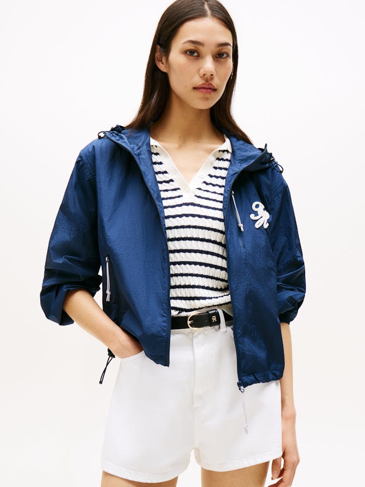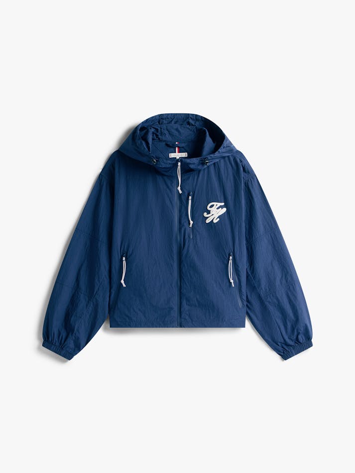 Upgrade your outerwear with this windbreaker style bomber jacket, featuring a embriodered Tommy Hilfiger logo and toggle-cords for adjustable fit.