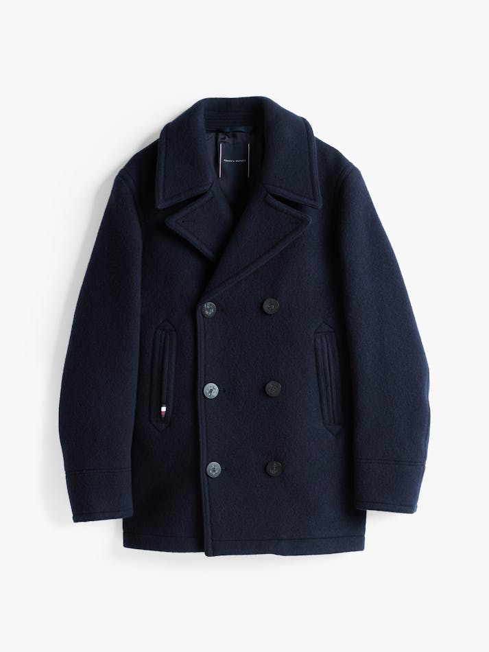 It’s the double-breasted styling with nautical buttons that gives this wool-rich peacoat its timeless look, while branded details add the premium edge.